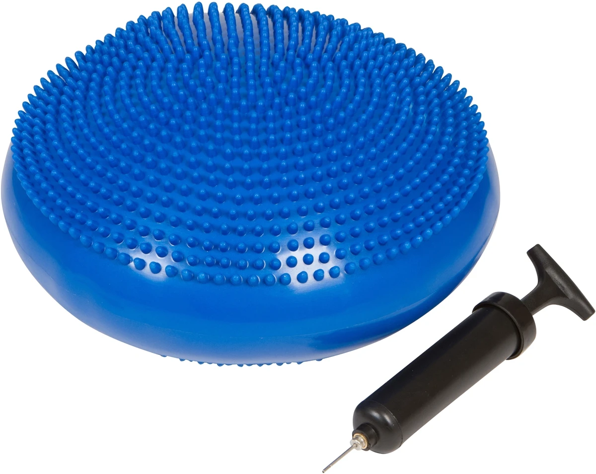 Versatile balance disc offers many utilities. Put it on your chair to increase comfort while in your desk chair. Stand on during workouts to improve balance, lower-body and core strength. Disc is 13″ in diameter and includes pump.