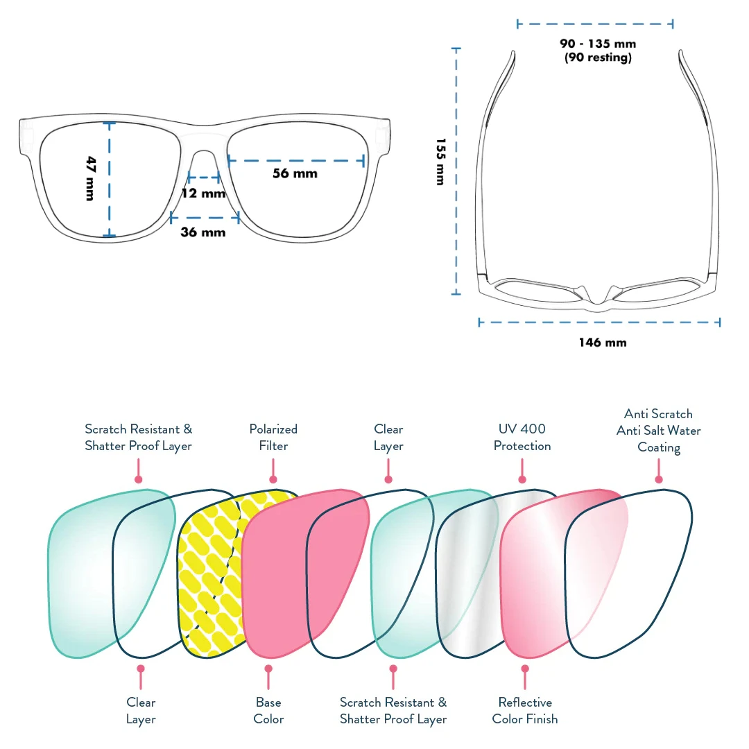 ALL POLARIZED – Glare-reducing, polarized lenses and UV400 protection that blocks 100% of those harmful UVA and UVB rays.