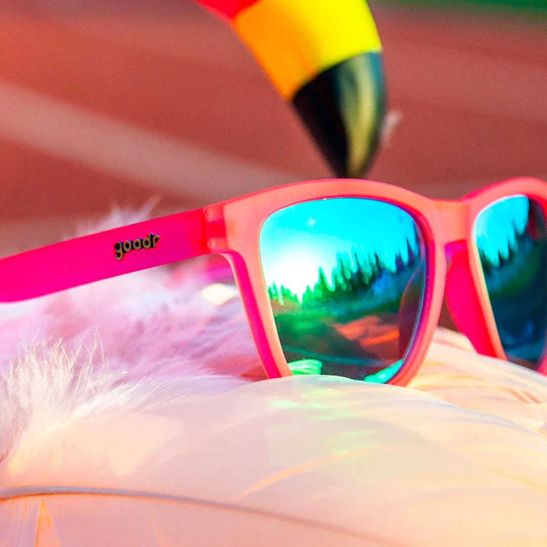 Listen, if you want to make your face look 10x better while sweating profusely during your 57th pistol… these pink frame BFGs with teal polarized lenses are for you. (Also, we know that you posted a photo of yourself and wrote a caption that you did 57 pistols, but we know that you didn’t. You did exactly 12 pistols, spread over the 7 takes you did to perfect your form, your hair and your sweat – which came from a spray bottle placed just out of frame.)