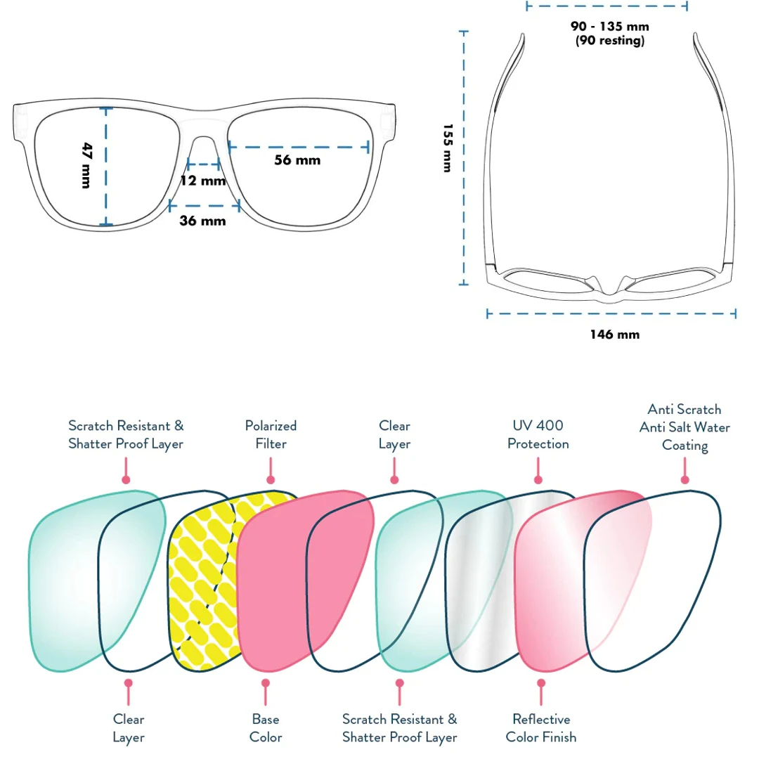 ALL POLARIZED – Glare-reducing, polarized lenses and UV400 protection that blocks 100% of those harmful UVA and UVB rays.