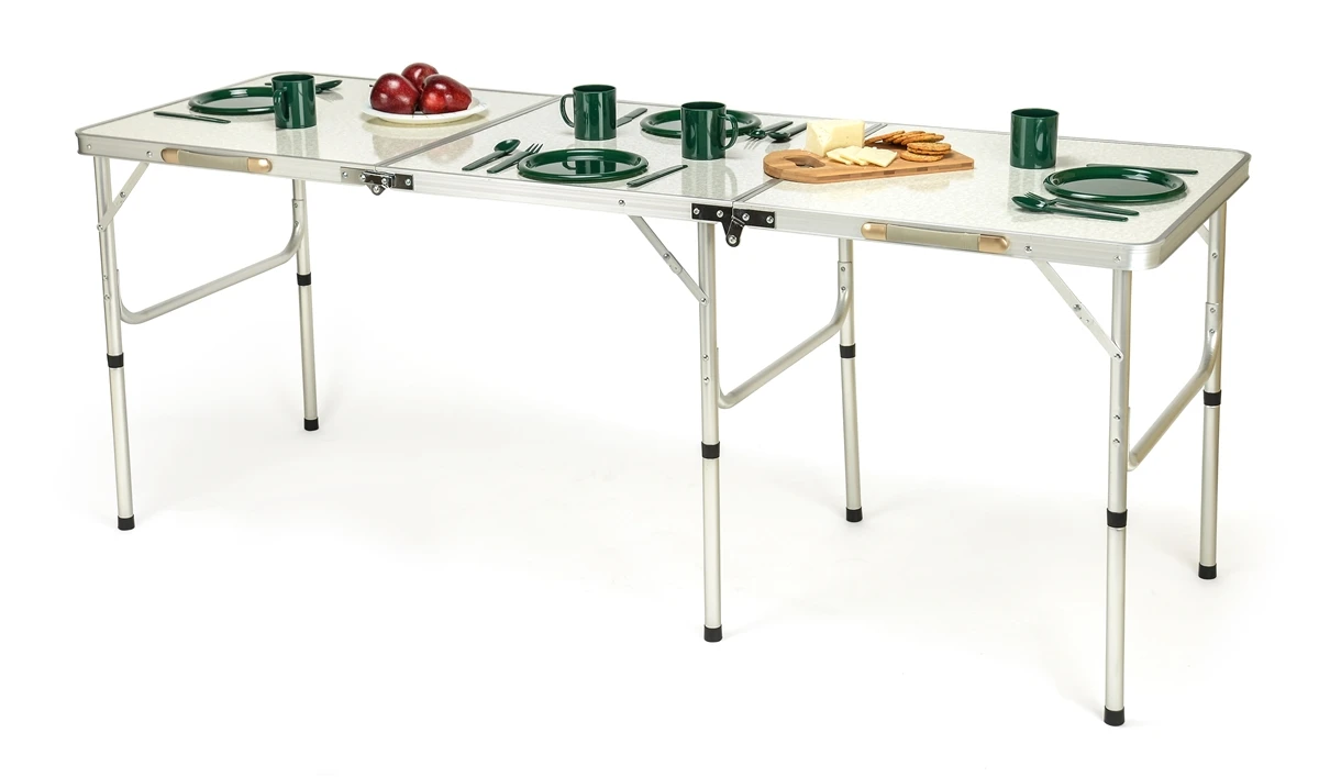 The table folds easily into a suitcase style for easy transport and weighs 20lbs.
