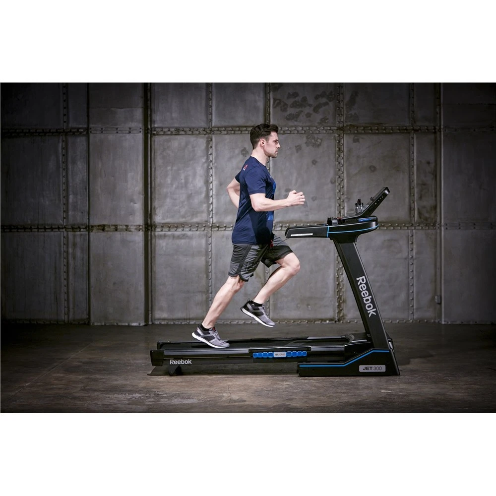 Featuring a powerful 2.5 HP motor, the Jet 300 is built for total home performance. Reaching 20 kph across 15 incline levels, the 300 offers all the tools to push your limits on every run. Fitted with a 7 window LED display and hand pulse sensors, the console shows detailed performance feedback with built-in speakers to power your run.