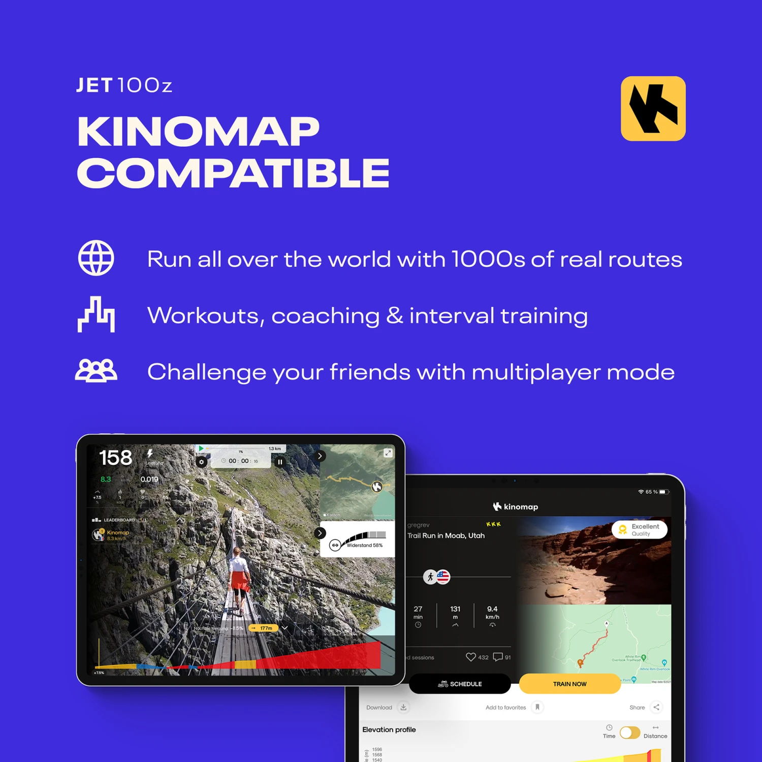 - Kinomap compatible – run real-world routes, challenge your friends and analyse workouts