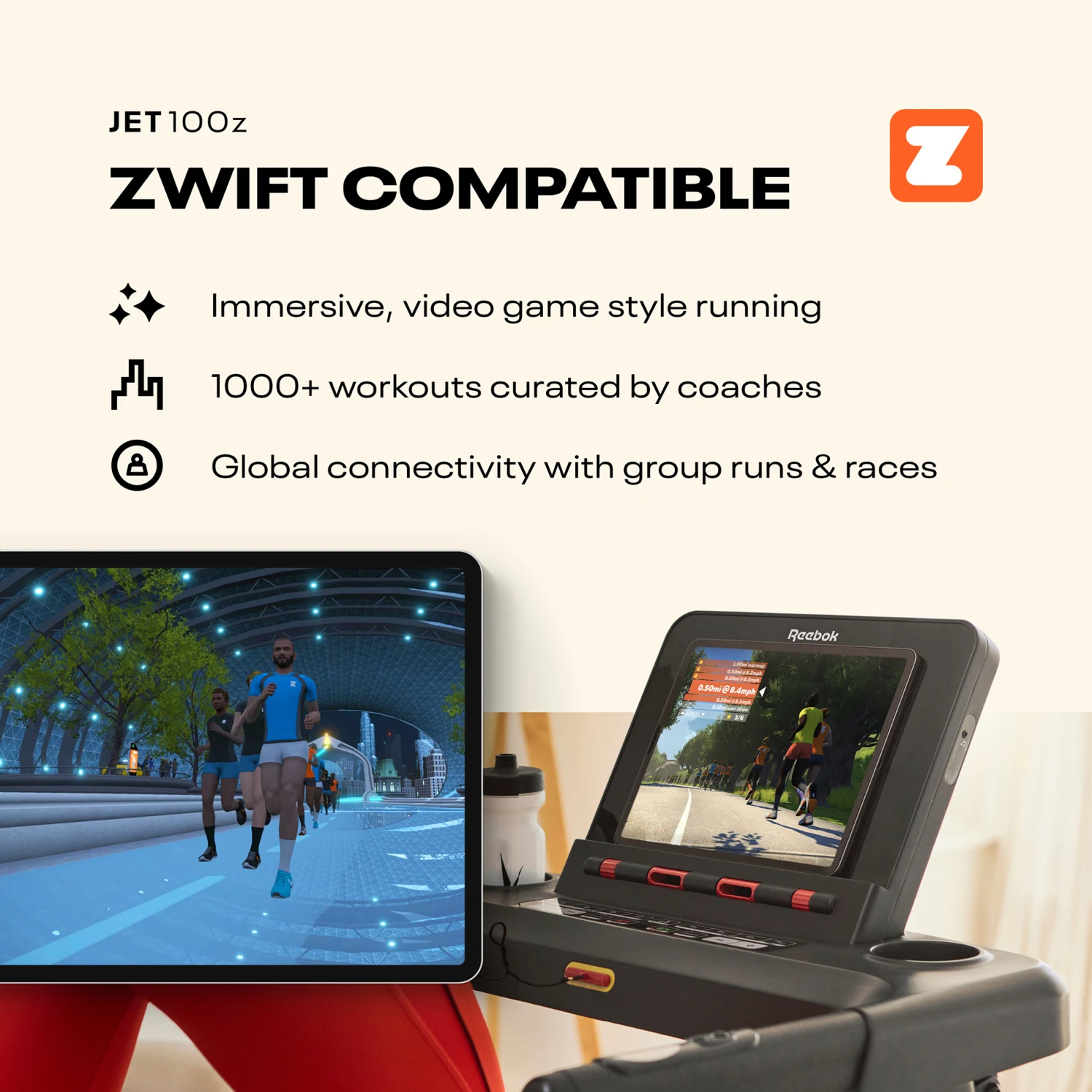 - Zwift compatible – immersive running experience connects you with runners across the globe