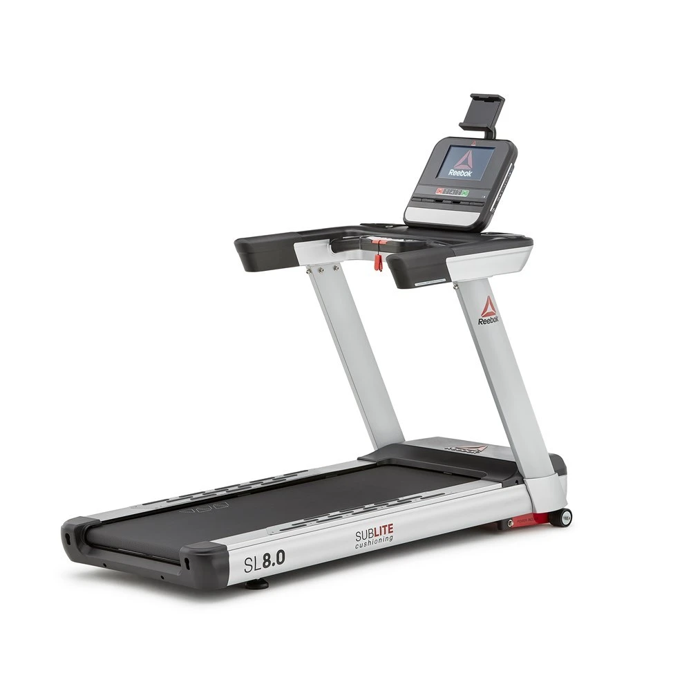 Engineered to incorporate SubLite Cushioning Technology and a unique orthopaedic running belt, the treadmill absorbs the impact you experience with every stride. The built-in mechanisms help reduce the toll taken on your knees and ankles by producing a smoother running experience. The internet-enabled console features a 10.1″” touchscreen display plus powerful 5W speakers, with entertainment apps such as Netflix, YouTube, Prime Video, Spotify, Facebook and Chrome to get you through your workout. Delivering all the performance feedback you need, the SL8.0 is fitted with built-in hand pulse sensors for real-time heart rate monitoring to ensure effective workouts. Complete with an adjustable smartphone/tablet holder atop the console, the SubLite Treadmill provides the optimum platform for more focussed and engaging runs.