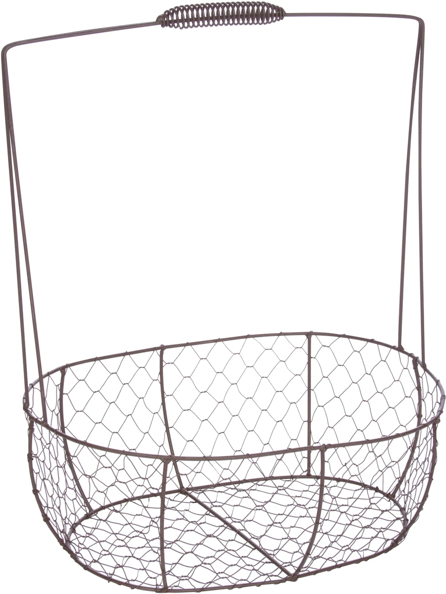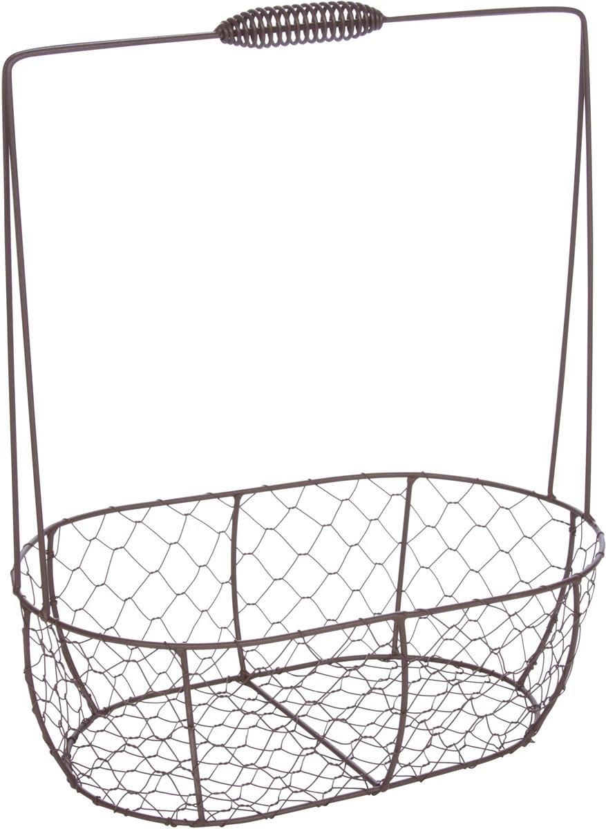 This set of 2 vintage style wire baskets are useful while being decorative for any room in the house. Â The larger basket measures 13.4″L x 9.4″W x 4.75″H and the handle is 15.75″H. Â The smaller basket measures 11.4″L x 7.5″W x 4″H and the handle is 13.75″H. Â Use them to store magazines, household and/or bathroom essentials. Â By Trademark Innovations.